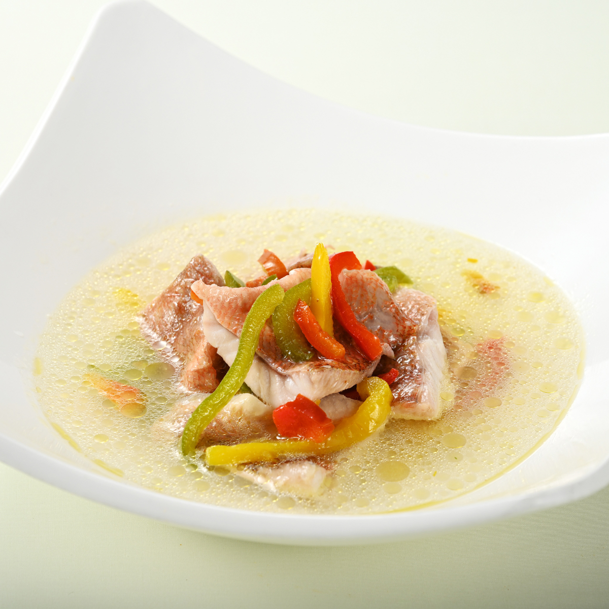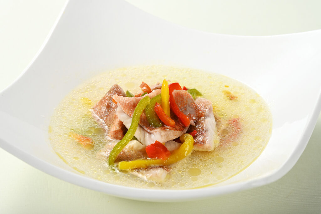 ・焼きメバルのアクアパッツァ 爽やかな柚子としろだしのソース