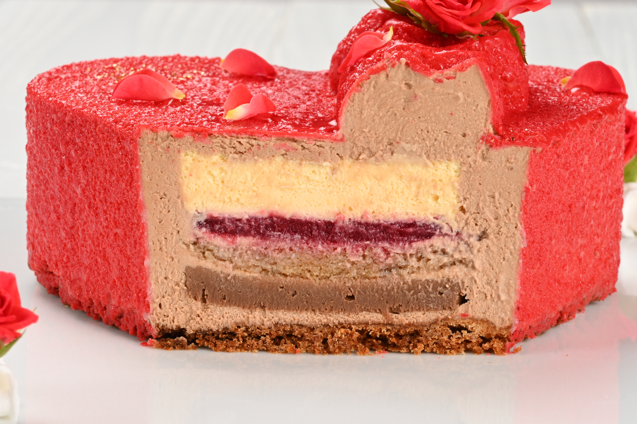 サクサクとしたチョコレートクランチに、なめらかなクリームと香ばしいダックワースが層になった、奥深い味わい